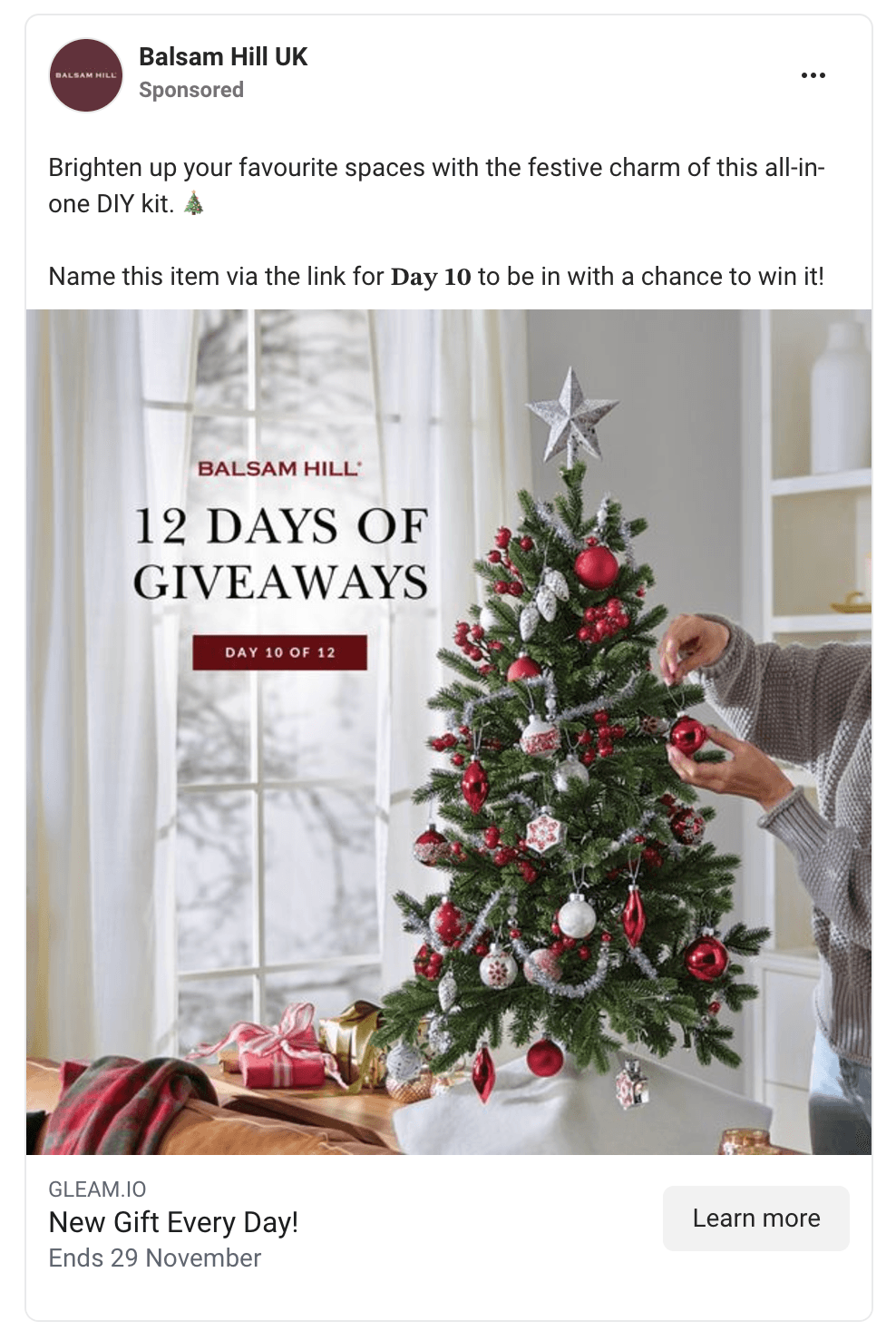 Leading artificial Christmas tree retailer Balsam Hill transformed their 12 Days of Christmas giveaway into a multi-channel success story using Gleam.